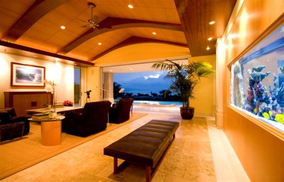 ![]() 10 years after the initial 6,000 sq. ft Wailea home was built the Williams decided to implement some of the original ideas that Debra Schonewill presented in 1998. Schonewill International was hired to do the renovation design and detailing. The ceilings were a large part as Debra had hoped not to use the white wash T & G and use richer woods on the ceilings. The ceiling designs were changed throughout the home. The other major element was the original outdoor bar stepped pit on the Lanai with a canvas awning roof. This pit was filled in to expand the lanai all at one level. A large roof overhang was also added with wood trim and lighting. The new outdoor bar was located out of the view plane with a direct access to the open air kitchen. The master bedroom and dining room received new designs of rich wood wall elements. We also designed/fabricated all new custom bedding in all rooms. The kitchen/dining received a new lighting concept and new wood wraps. The living room was completely redone, beautiful wood ceilings, stone flooring, new furniture, custom automatic rising flat screen TV cabinet. The original aquarium wood surround remained and was designed to tie into the ceiling wood species. The result of the renovation is a richer home which relates more to the native environment of Maui.